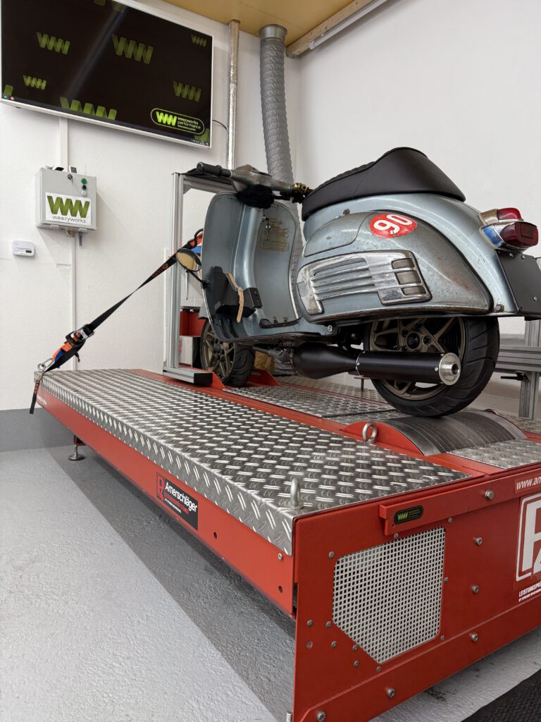 Auf unserem gebremsten Leistungsprüfstand messen wir präzise bis zu 300 PS. Egal ob klassischer Vespa-Motor oder modernes Projekt – wir ermitteln Leistung, Drehmoment und Fahrverhalten deiner Maschine. Damit erhältst du eine klare Grundlage für Tuning, Optimierungen und Vergleiche.